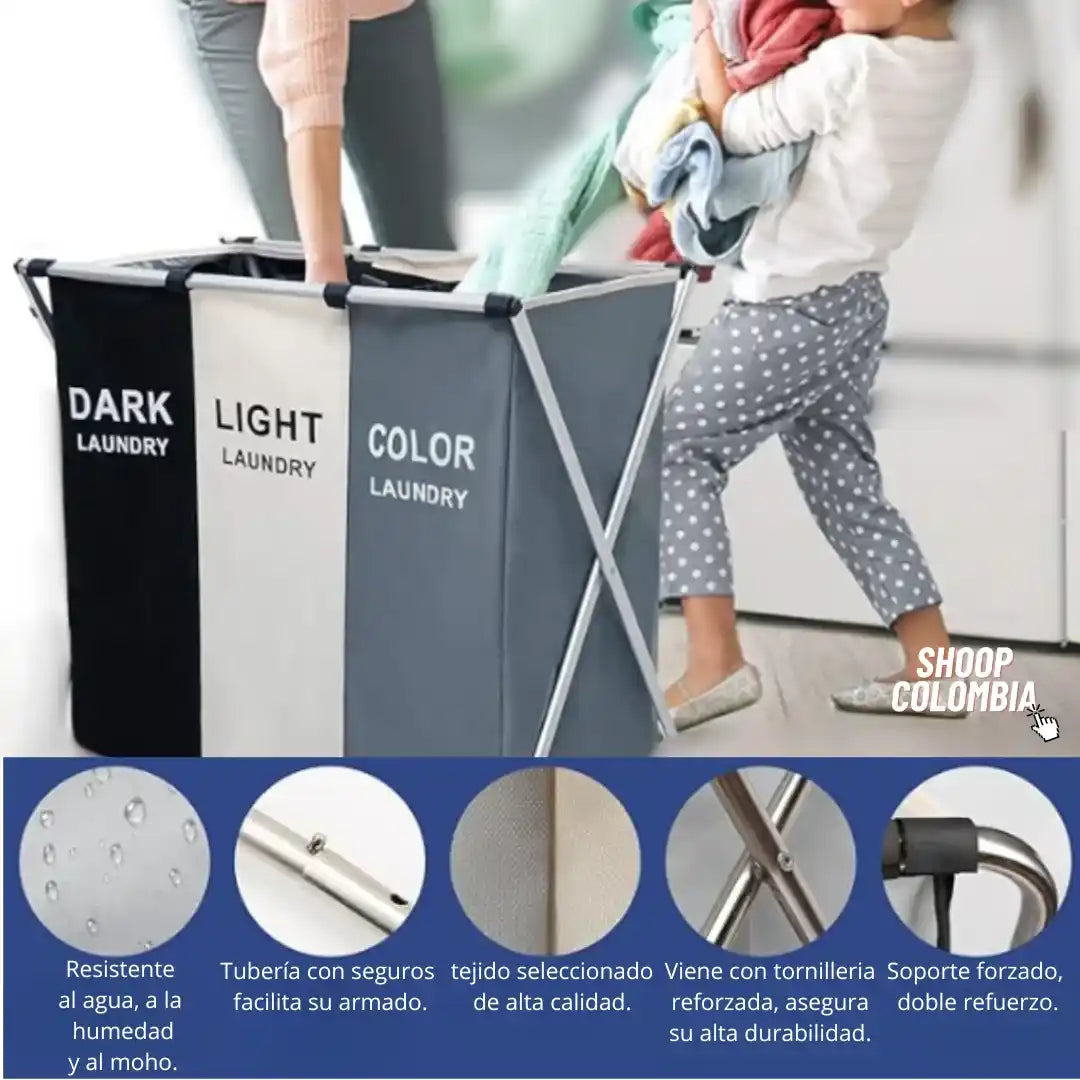 ✨ORGANIZACION EFICIENTE: Tres divisiones para clasificar la ropa por tipo o color, facilitando la tarea de lavado y organización.