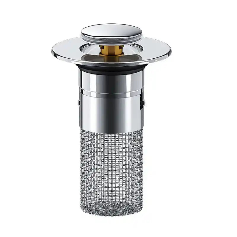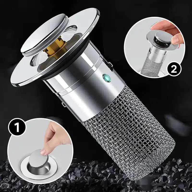 A diferencia de los desagües de botón normales, este tapón de desagüe tiene una cesta antiobstrucción.