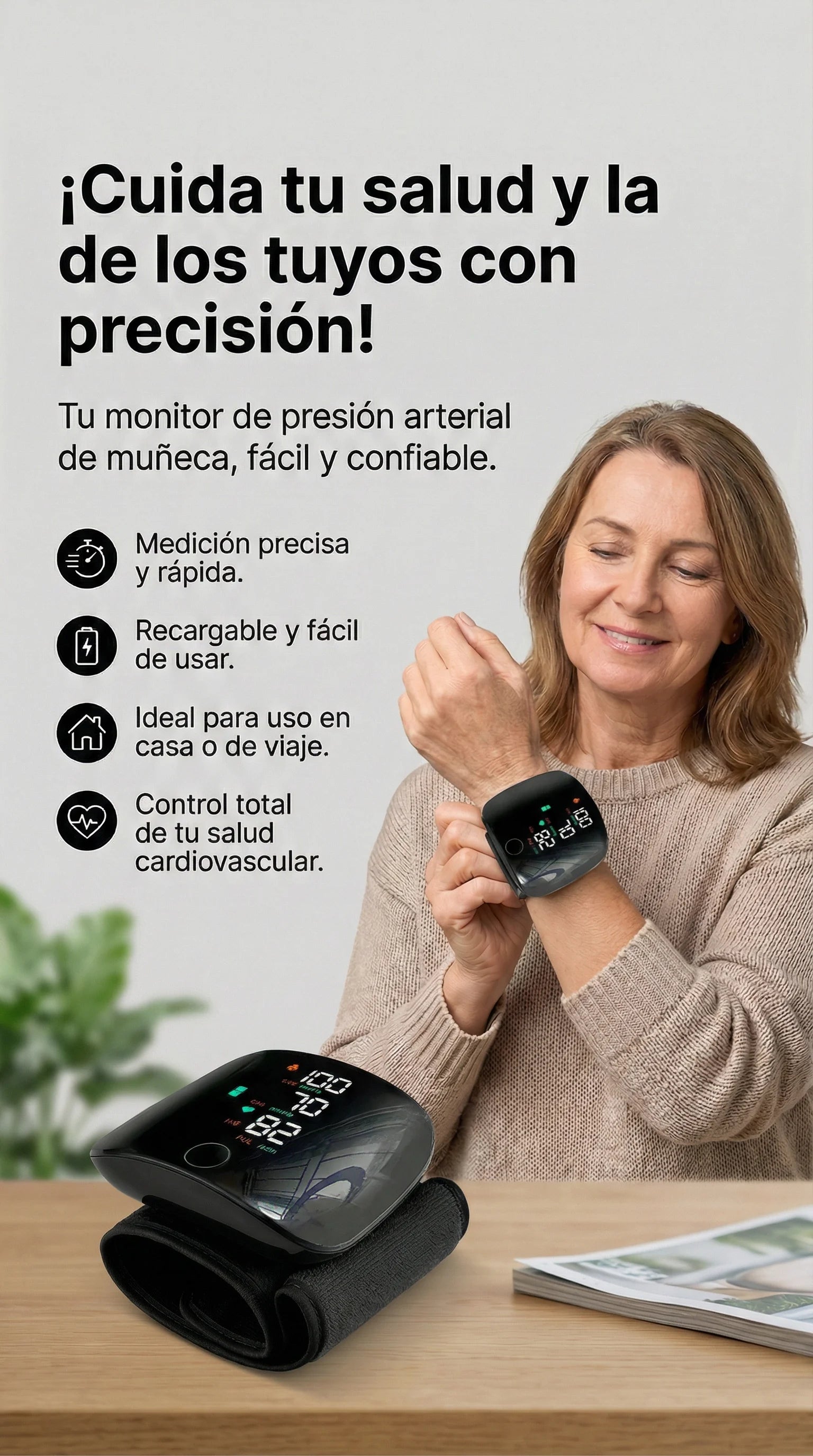 Monitor De Presión Arterial De Muñeca Con Voz || Usb Recargable Color Negro